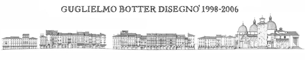 He has, since completed his studies and graduated in architecture, devoted to the profession, but has never stopped cultivating design. Among the many experiences that dot the years - collaboration with the technical office of his group during the military service, the illustration of books, posters for the VW Beetle Historic Club - two experiences prelude to this last: the reliefs of the Loggia dei Cavalieri (the Knights’ Loggia), performed as support to a project for the restoration by his father Memi in 1991-92, published in 2000, and the perspective view of the city of Treviso realized in 1997. Is clarified with this work a precise method and style of Guglielmo Botter, who grafted on measurements and precise calculations his sentitive and creative sign: his Calmaggiore therefore combines the precison of relief to a lyrical and sentimental “representation”of the prospectus of the buildings. Completely right scale relationships between buildings and between different parts of each building - also note the height profiles of the soil - are vividly rendered in vibrant graphics of the roofs and ashlar, in light shading of the overhangs, in the description of details such as shutters, balustrades and flower vases that decorate pergolas and sills (but there is also a roof garden!): the ability to embrace in a single view the two long tables offers an unprecedented synthesis of the most famous and popular street in Treviso, since that the direct vision allows only partial glimpses. In truth the “Trevisans” are habit to enjoy the Calmaggiore walking under the arcades, and are therefore more accustomed to look at the variable arches and at the changing ceiling heights and know better pictures painted on these walls and on vaults of the arcades - some have called this walk "the way of Madonnas "because of the richness and variety of sacred representations - much better than the architecture of the facades and the now rarefied mural paintings: to enjoy it you must look out of the edge of the porches or down in the street, and turn, not without some difficulty being the narrow space, head held high. Therefore welcome to the art work of Guglielmo to give us knowledge about the alignment of plans and roofs, roof terraces (altane), the presence of which is invisible from the street; to note the existence of several "Lotti gotici" witnessed by the narrow measure of the facades and at the same time to understand as "nineteenth century style" has badly modified (flattened?) poetics asymmetries of Gothic and Renaissance buildings: proving that it is preferable a bold modern architecture than the ironed and clumsy “reconstructions style”.