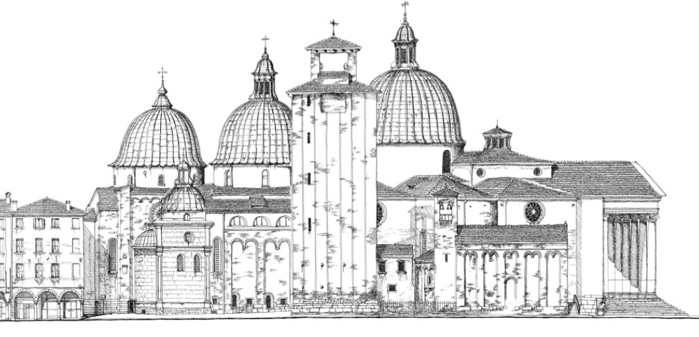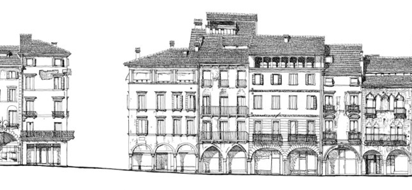 This important project took some years to be ready for editing. Guglielmo represented both side of the “Calmaggiore” of Treviso in a unique view. No one tryed to realize this hard work before and now you can have a complete sight of the half chilometer of the main street of the medieval city. Beginning from the imponent Dom, you can virtually walk in the heart of Treviso until Piazza dei Signori with the municipal tower and magnificent Palazzo dei 300. Guglielmo has made hundreds of sketches of the elevations of the building, reproducing every detail of cornices, columns, arches and decorations that adorn the beautiful medieval and renaissence houses of his city.