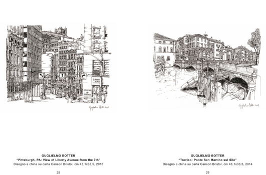 Deeply attached to his native city, Guglielmo took care over the years a vast production of iconographic Treviso using the ancient technique of china ink. Graduated in Architecture in 1993, he never abandoned his passion and draws alongside his professional activity.